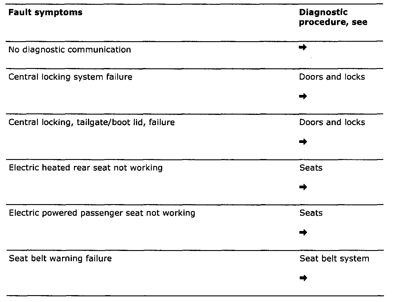 Table, Fault Symptoms