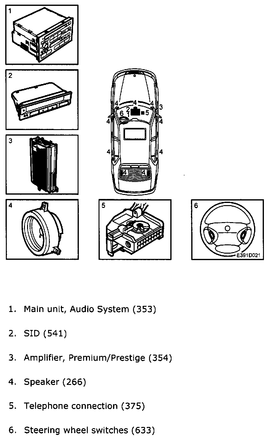 The audio system has side and centre speakers in the dashboard as well as in the front and rear doors. The Prestige system includes a bass speaker in the parcel shelf as well. These can relay incoming telephone sound during a call.