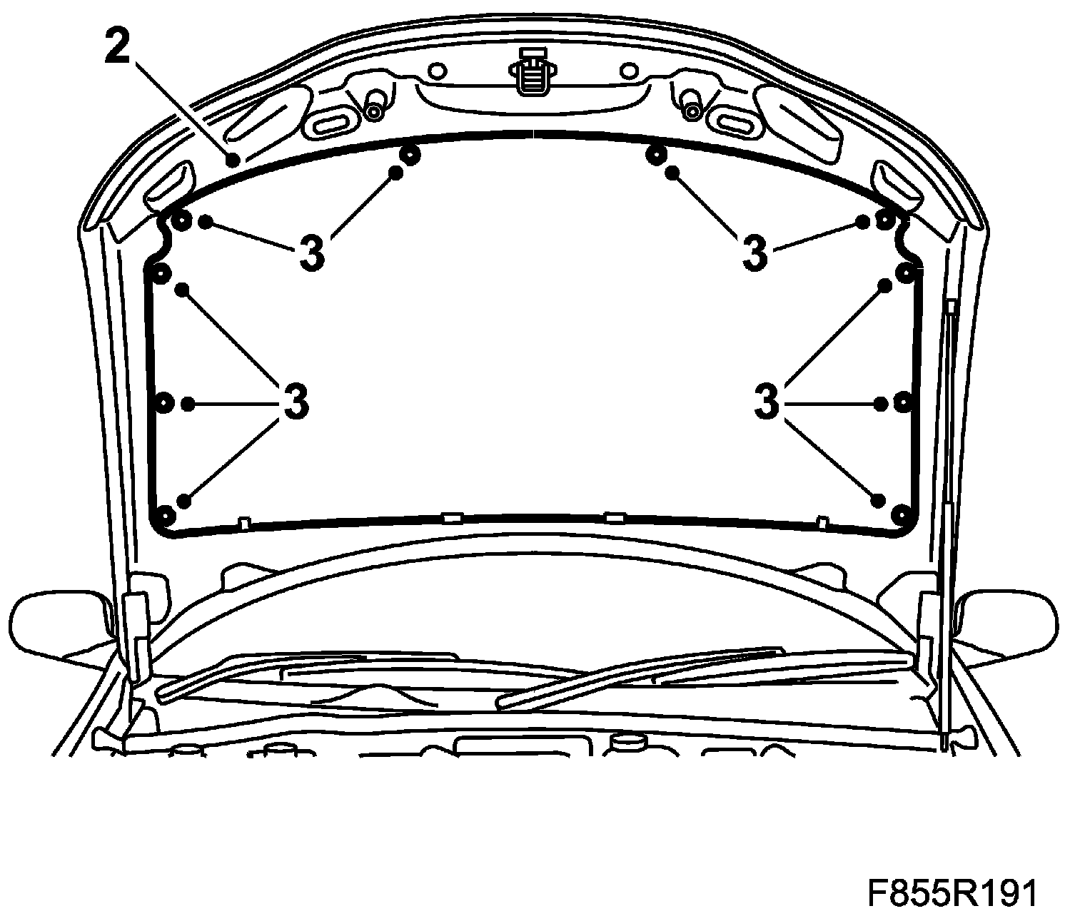 2. Clips with screw: Remove the bonnet insulation clips by unscrewing the centre screw. Pull the clips directly outward.