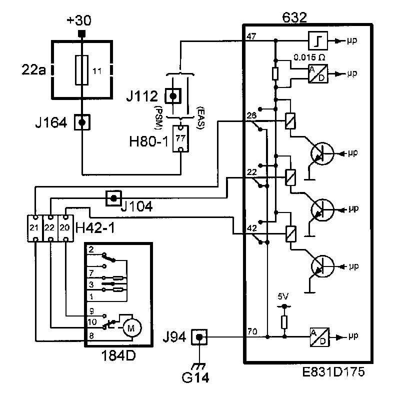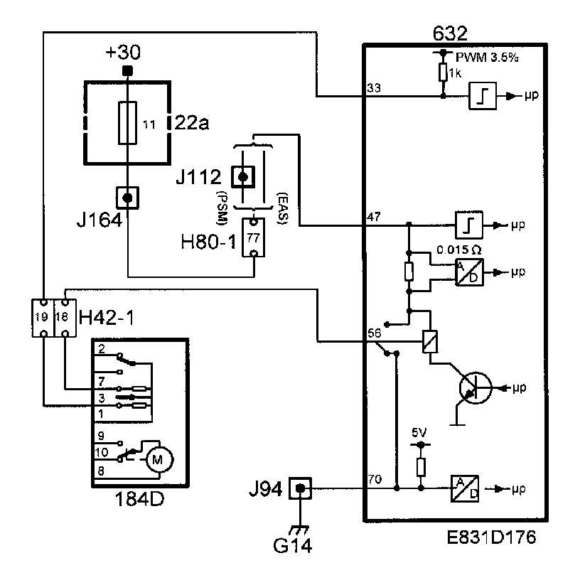 1. When the car is not locked, the microswitch is in position pin 10. When the electric motor is supplied with current from pin 22 on the TWICE control module and the central locking system is locked, the microswitch position is changed by the movement of the electric motor to pin 9.