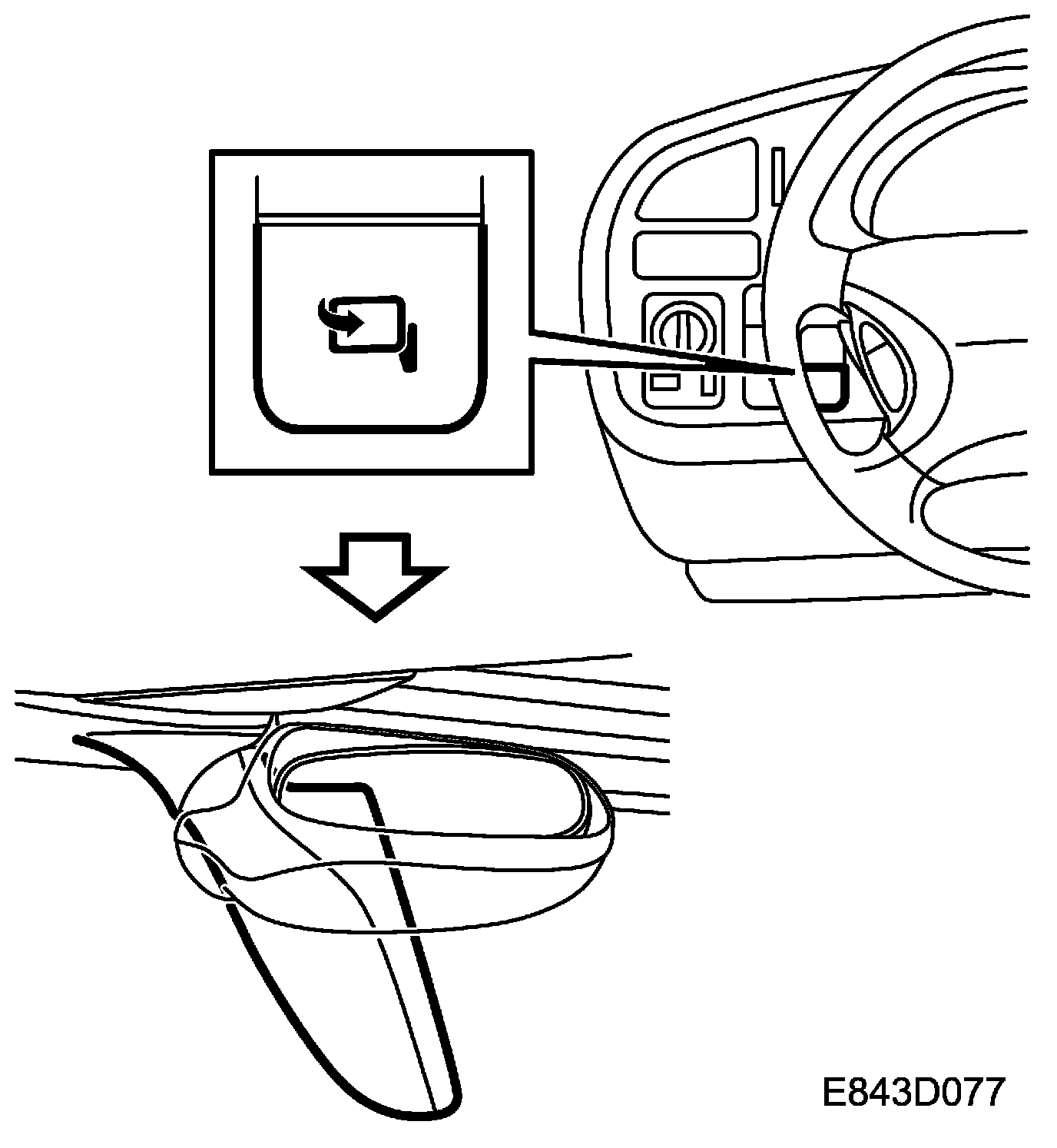 By pressing the switch the door mirrors are folded inwards. With the next press on the button the rear-view mirrors are folded out to normal position. The function is only active when the ignition key is in the ON position.