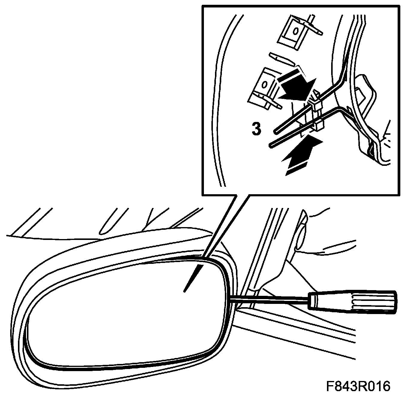 2. Fold the door mirror forward and check that the clips hold in the holes.
