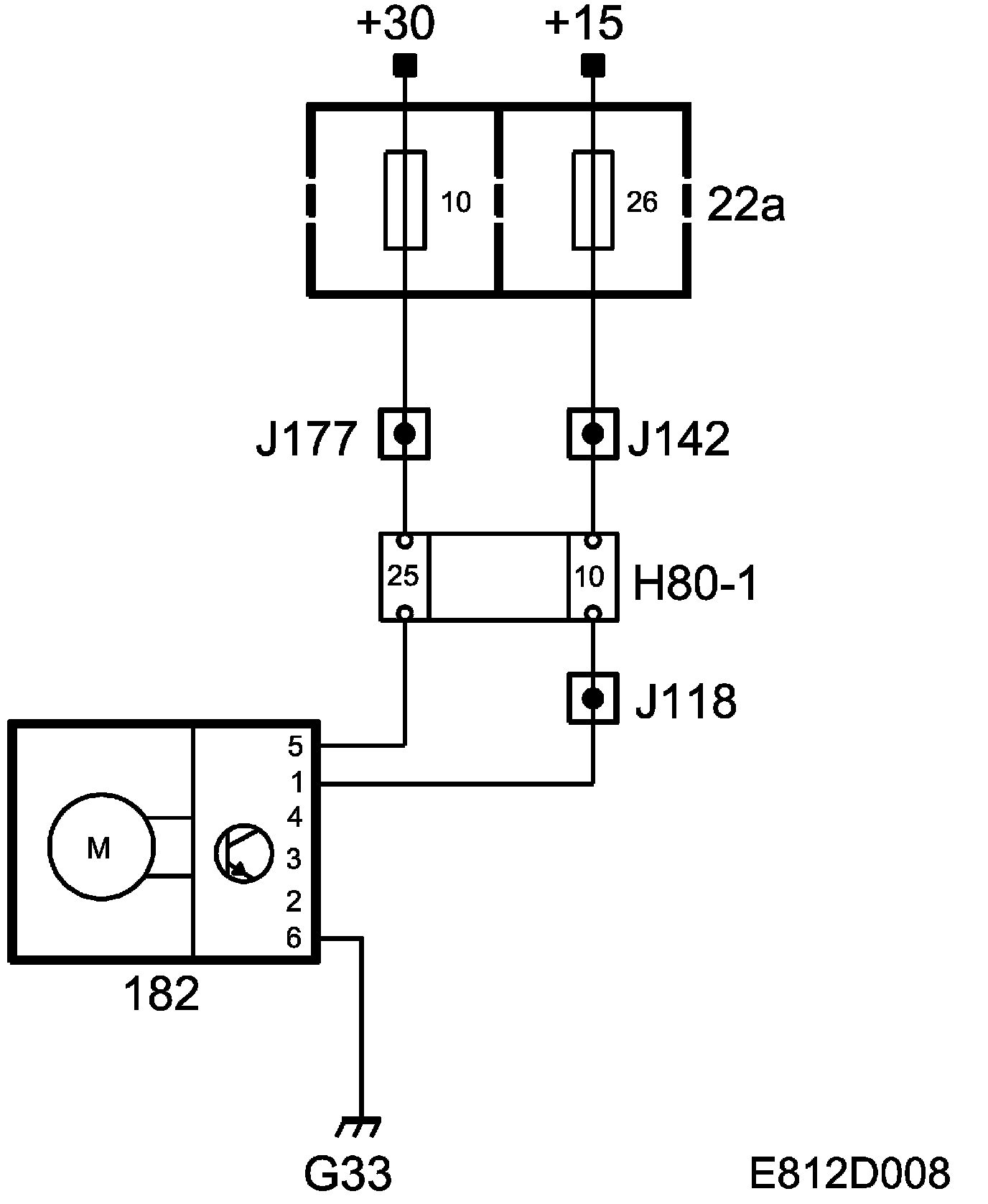 +30 voltage is supplied via fuse 10 to pin 5 of the electric motor.