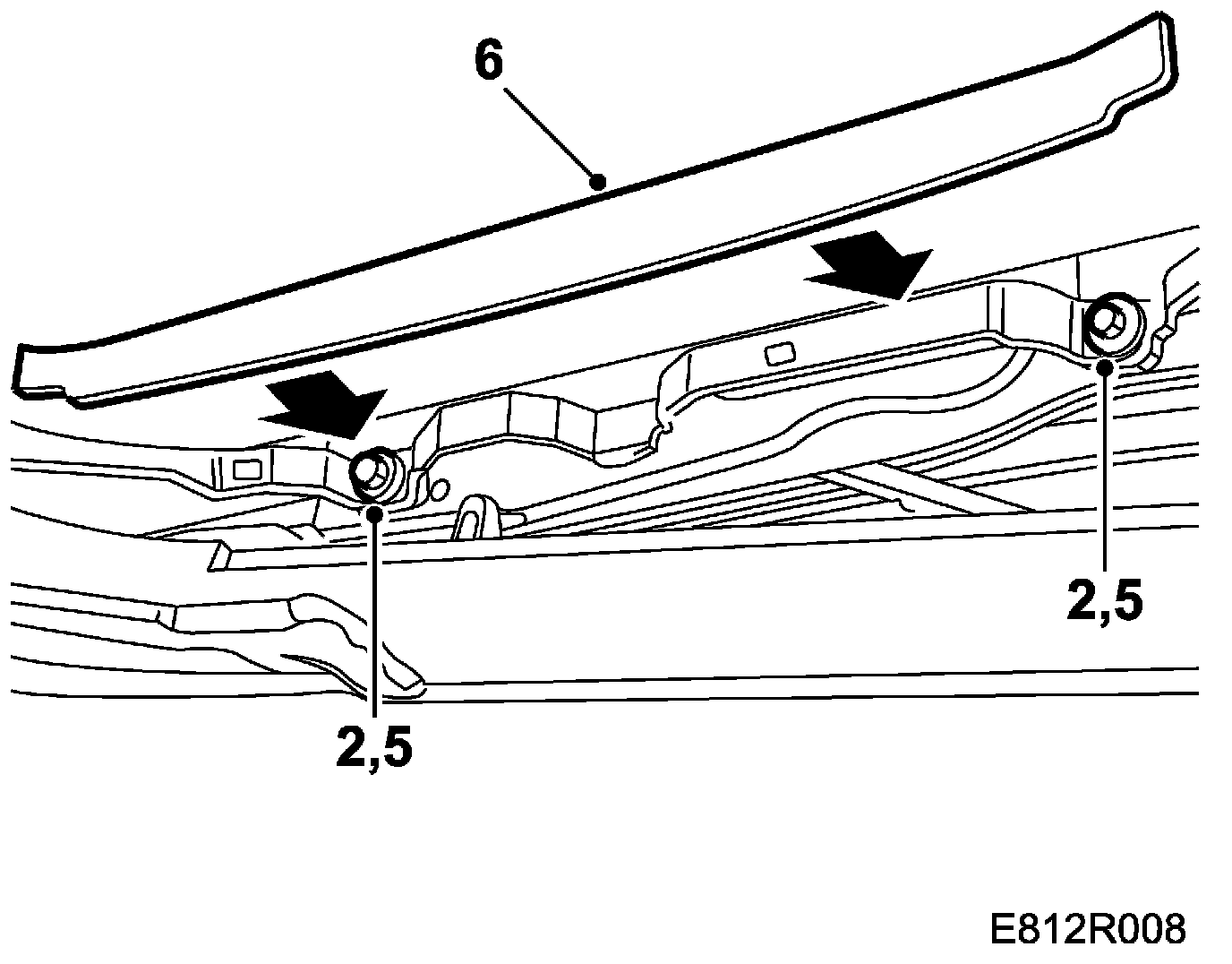 4. Remove the rear edge of the cover strip by pulling it towards the centre of the car so that the clips come undone. Pull the cover strip out through the rear edge of the hatch. Be careful not to scratch the roof.