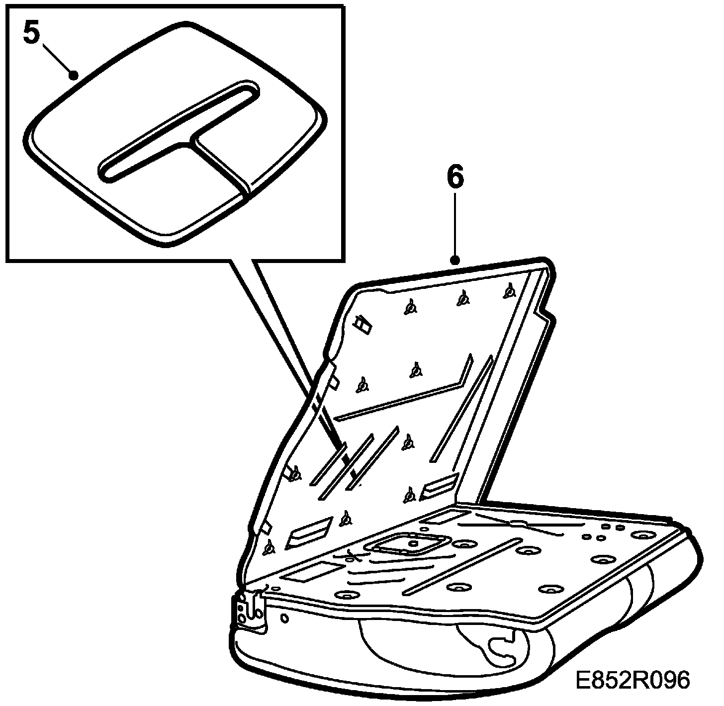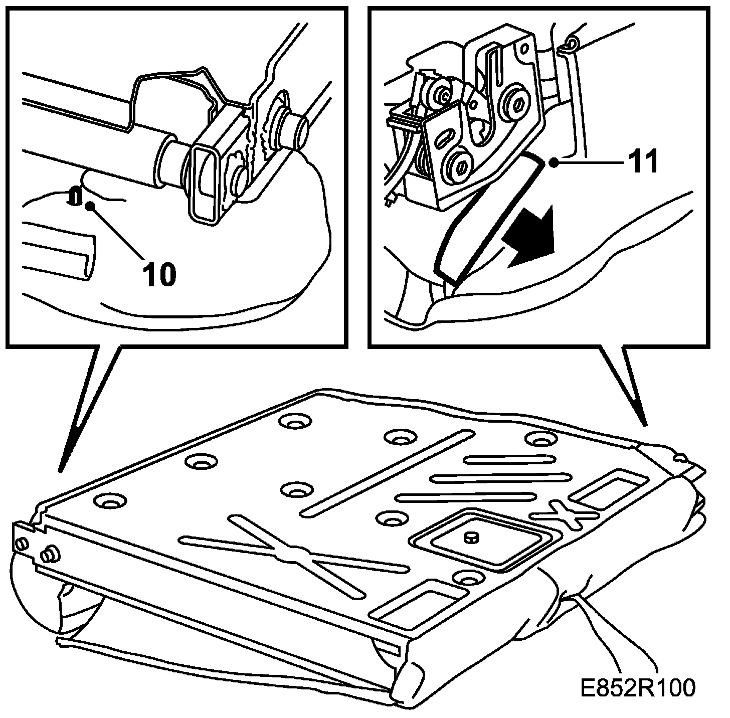 6. Pull away the back plate that is fastened with clips. Extract the angled part of the upholstery from its groove so that the plate can be removed.