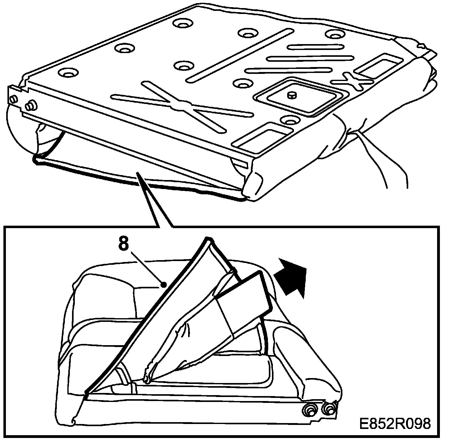 1. Fit the backrest upholstery over the foam padding and secure with new seat cover staples from fitting kit 84 71 062.