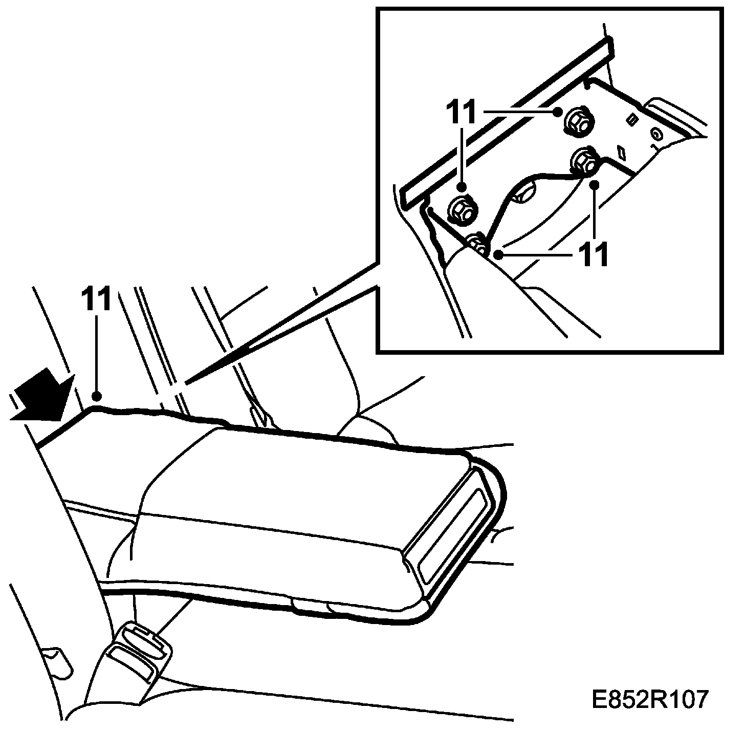 7. Remove the armrest by lowering it, unhooking the upholstery from the edge of the plate and removing the 4 nuts.