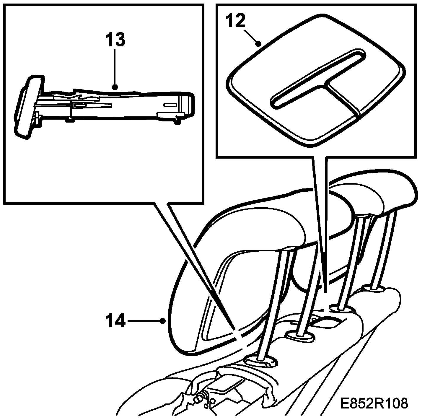 14. Fit the head restraint by depressing the catch and pressing it home. Take care to keep the legs of the head restraint parallel with each other.