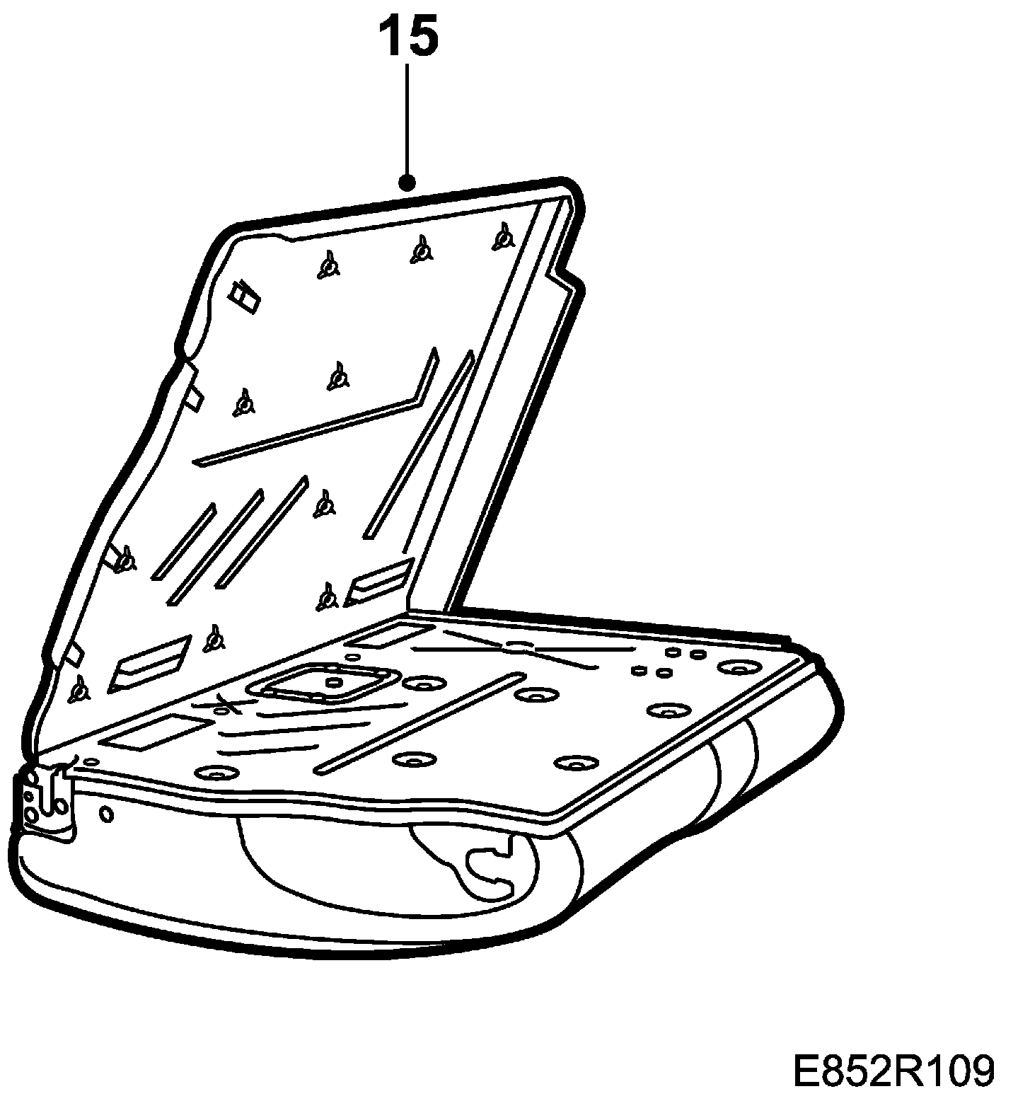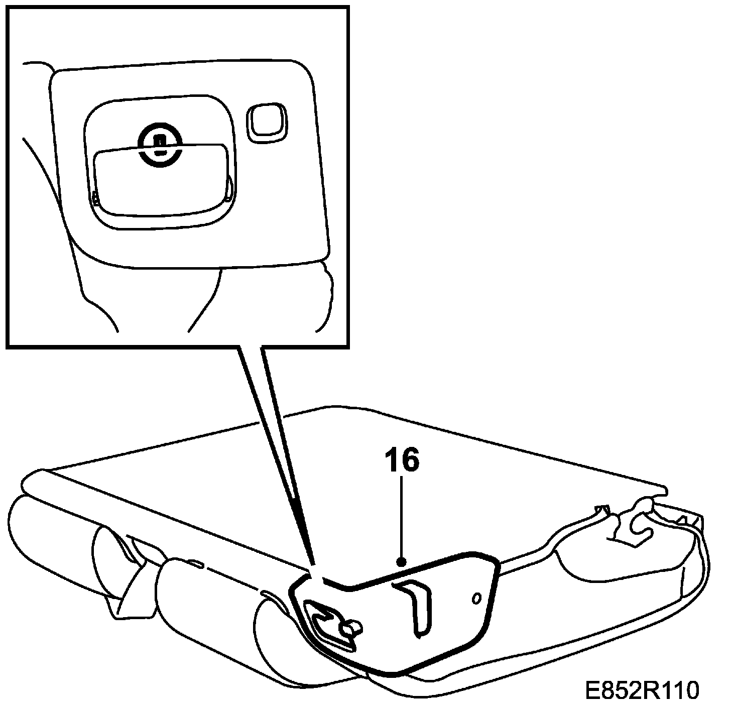 16. Fit the plastic cover on the backrest catch by pressing it on while the catch is open/unlocked (1 screw and a bayonet clip under the handle). Check its function.