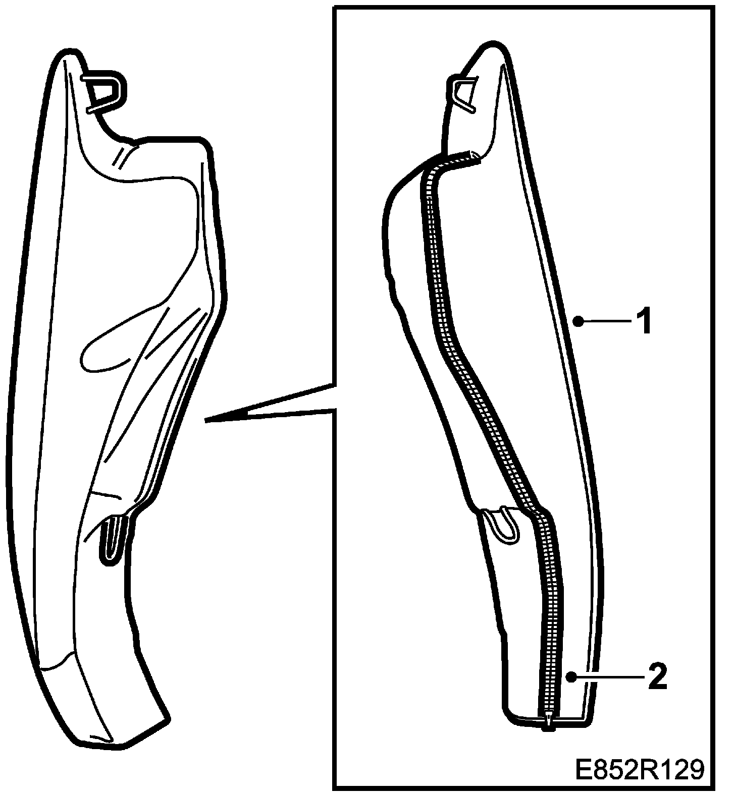 1. Remove the side bolster by pulling on the top edge to release the locking tongue, unhooking the bottom locking tongue and lifting away the bolster.