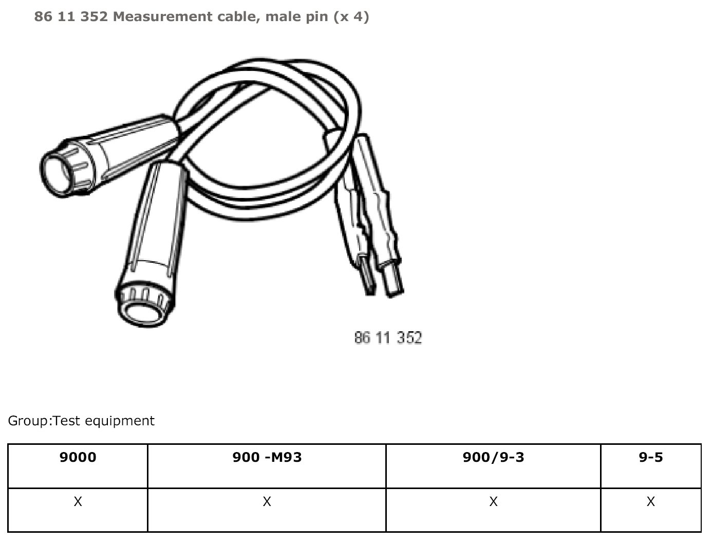 86 11 352 Measurement Cable, Male Pin (x 4):