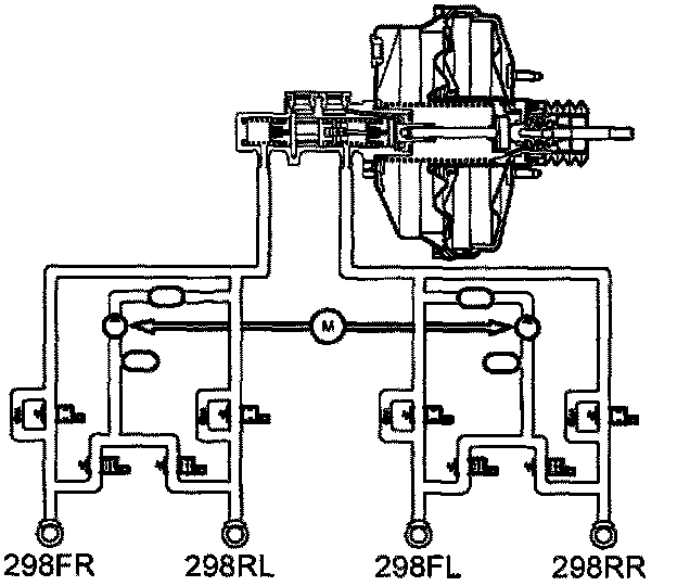 The master cylinder and other hydraulic components are charged with brake fluid that is not pressurized.