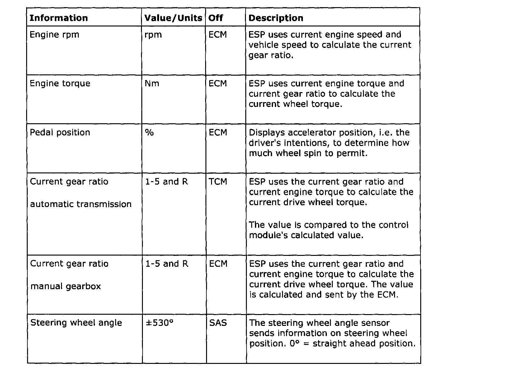 ESP uses the following information: