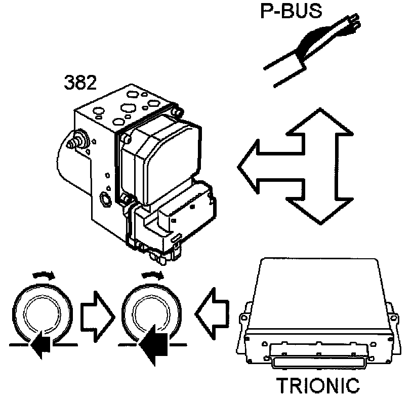 The TC/ABS control module sends information with a torque request to Trionic. The information is sent via the P-bus.