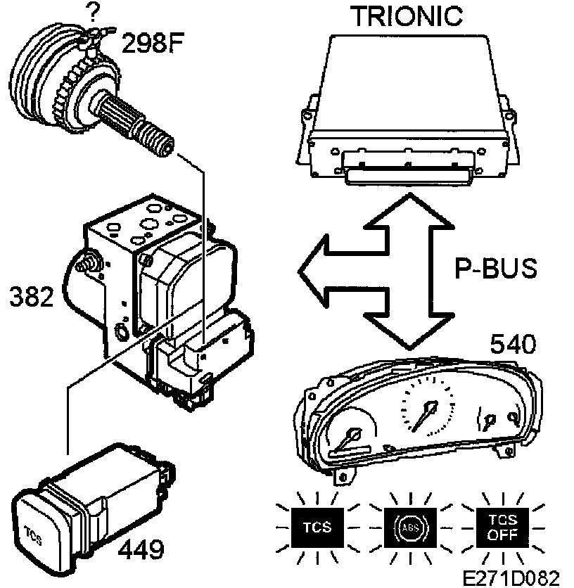 if a fault occurs in the TC/ABS system, the TCS OFF indicator lamp will be turned on via the P-bus. The warning lamp is also turned on when the system is disabled manually, which can be done at speeds below 60 km/h (37.5 mph) by pressing the TCS switch. The system can be engaged by pressing the TCS switch at any speed, whereby the TCS OFF lamp will go out again.