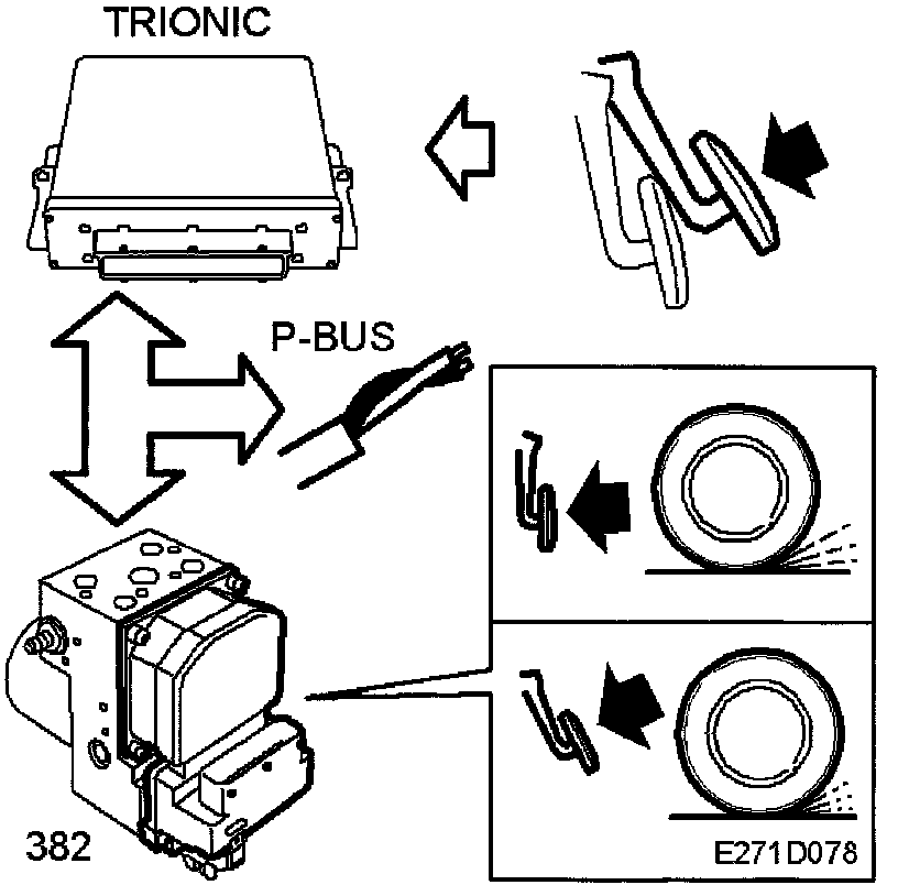 If the information about pedal position is incorrect, diagnostic trouble code C1926 is set and the pedal position function is omitted from TCS modulation. However, the TCS function works as normal.