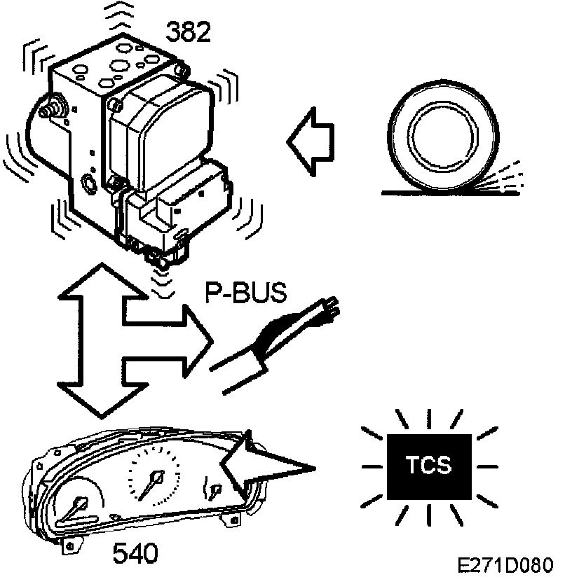 The lamp is turned on when the TC/ABS control module sends information to the P-bus.