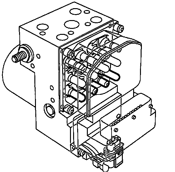 The valve block, which is an integral part of the hydraulic unit, modulates the brake pressure to the calipers when ABS braking and TCS modulation with braking are activated.