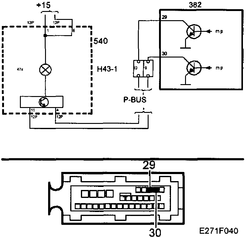 ^ Check the lead between pin 28 of the TC/ABS control module and pin 13 of the MIU (K20).