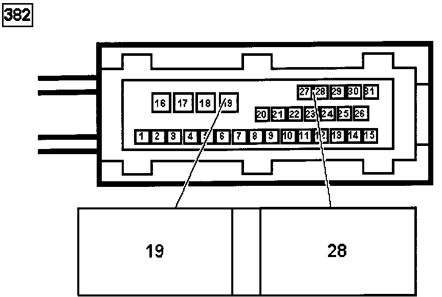 ^ Connect a jumper lead between pins 19 and 28 of the female connector.