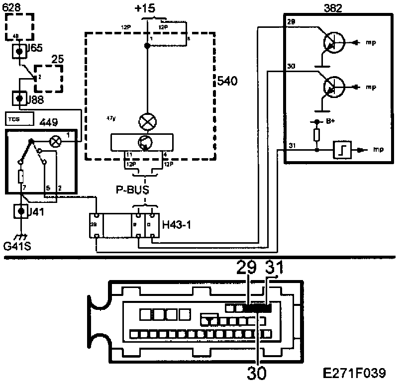Rectify the lead between pin 28 on the TC/ABS control module and pin 13 on the MIU (K20).