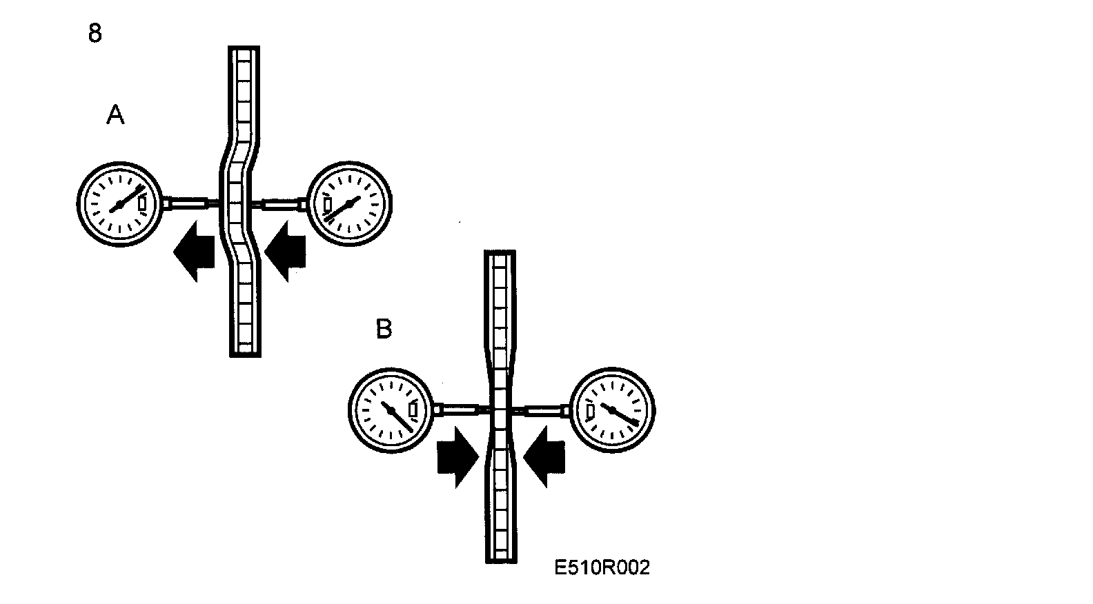 8. Rotate the disc and read the gauges. Note the runout (A) and variation in thickness (B).