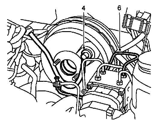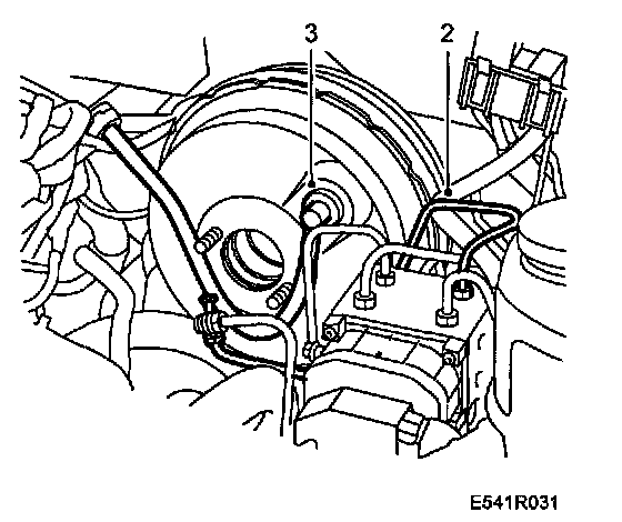 2. Clean the area round the connections using compressed air. Remove the master cylinder's rear brake line from the ABS and plug the holes.