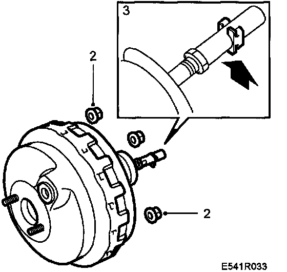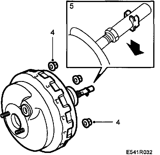 2. Position the brake servo on the bracket and tighten the four retaining nuts.