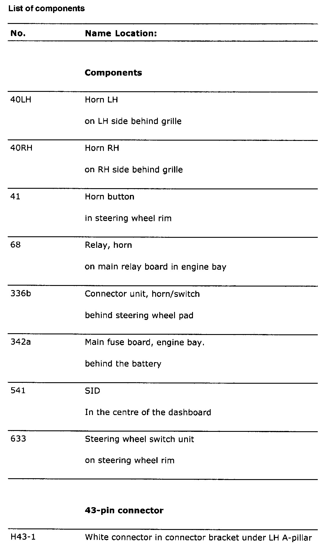 Component List