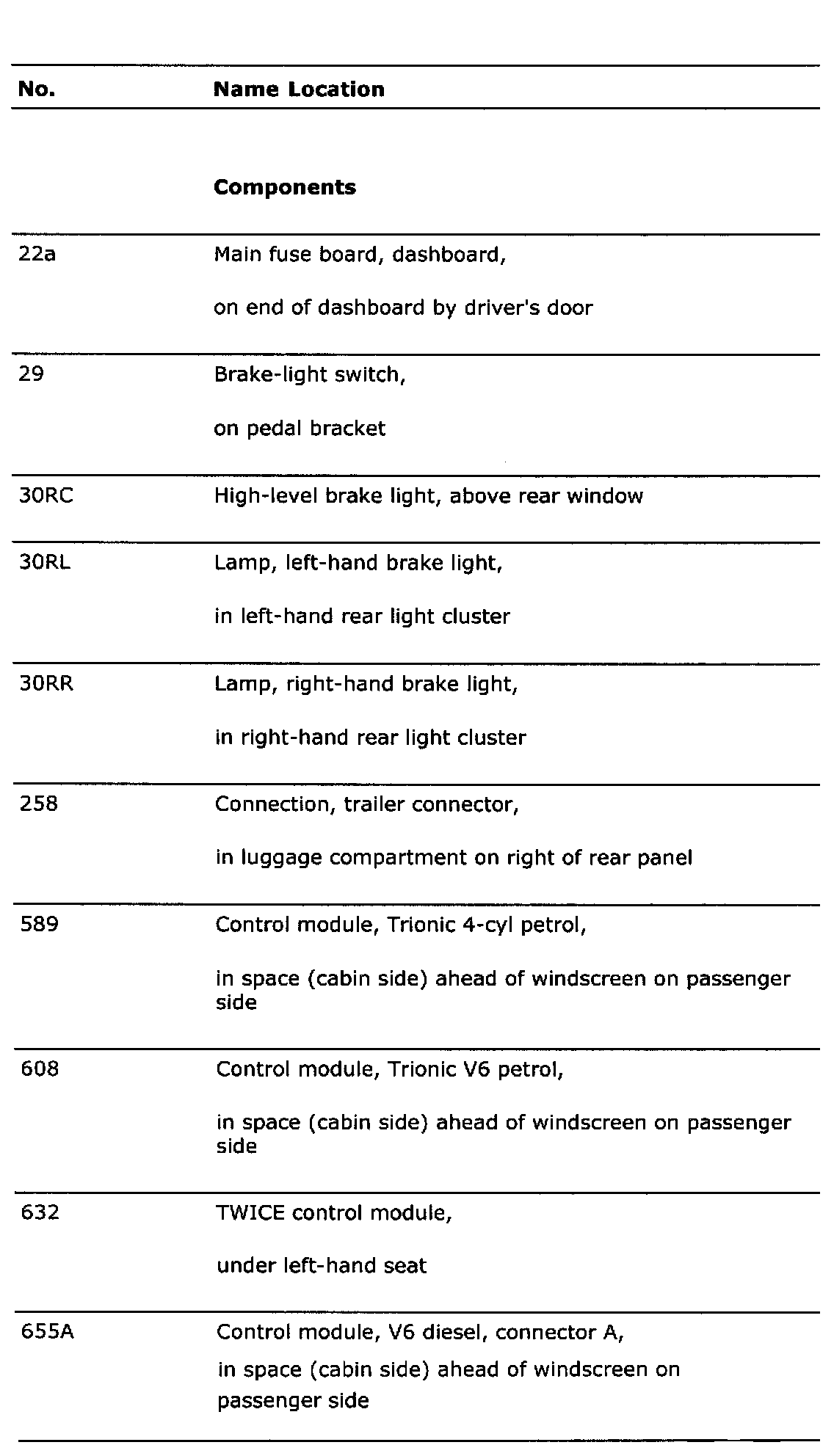 List Of Components
