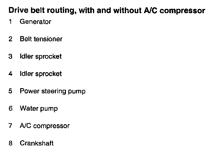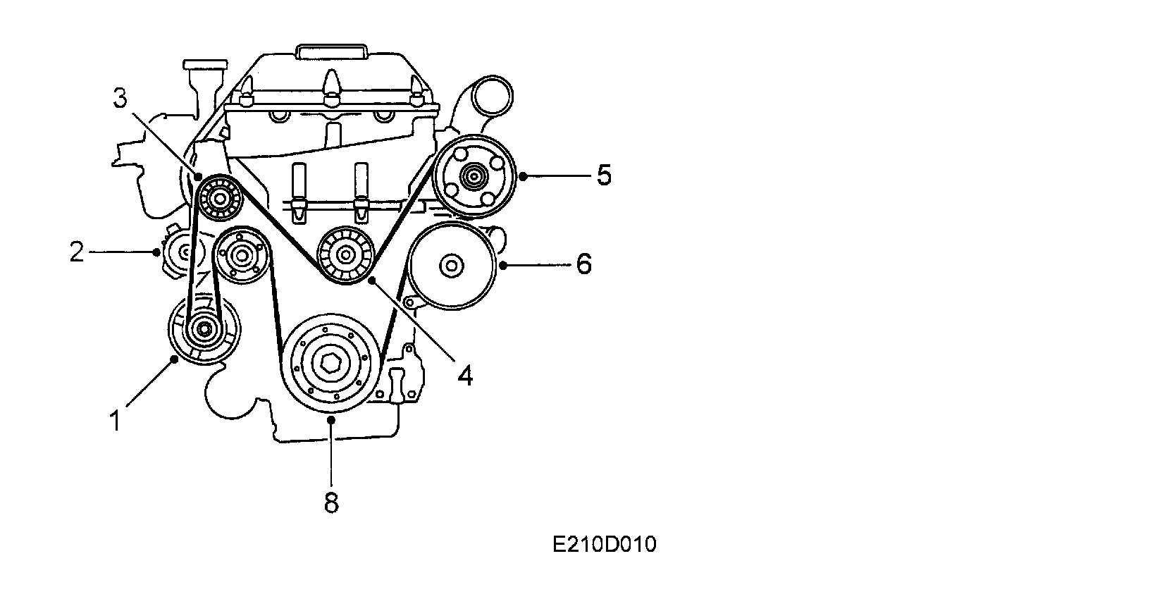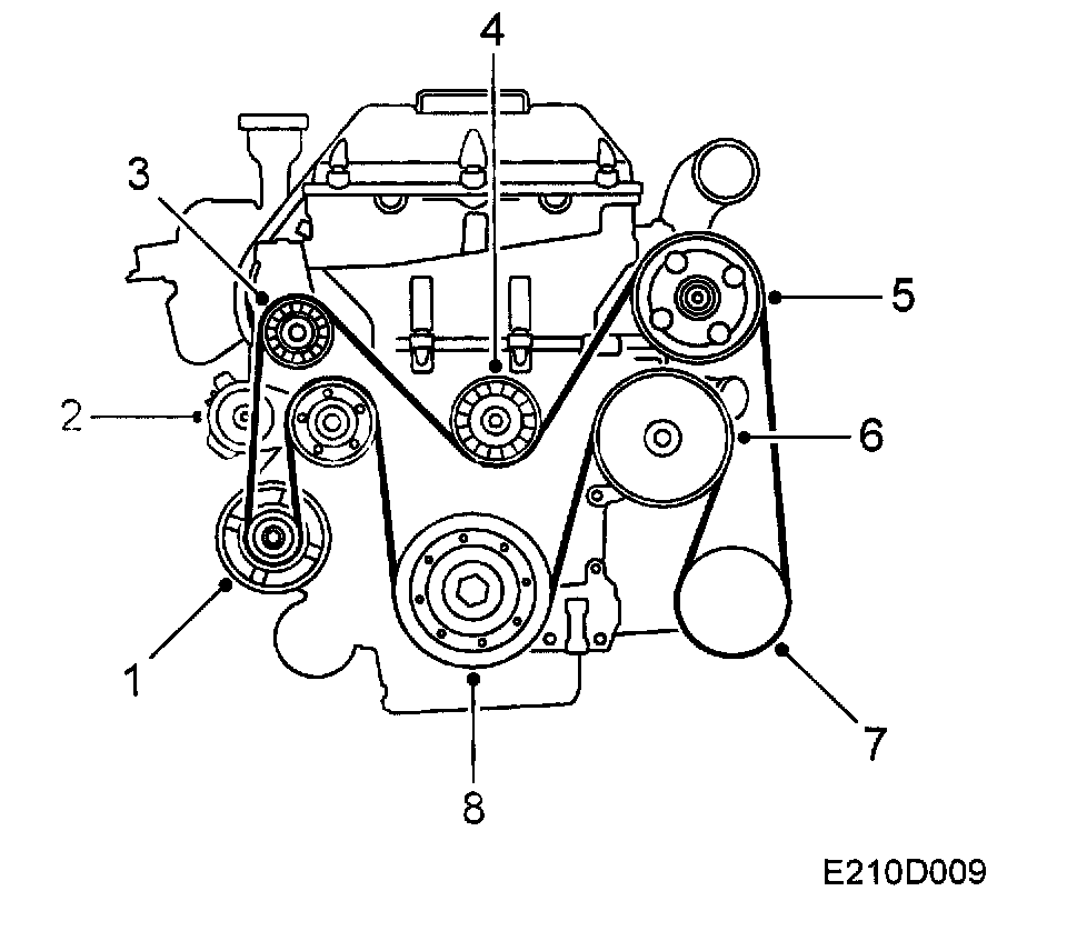 The engine has only one belt drive for all the auxiliaries. The drive has an automatic, self adjusting belt tensioner consisting of a powerful spring which maintains belt tension via a pulley.