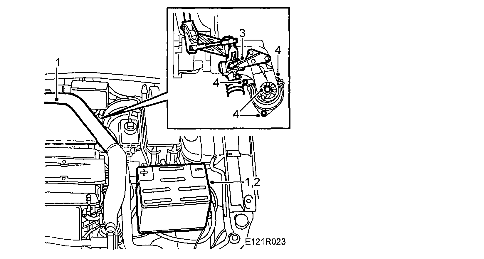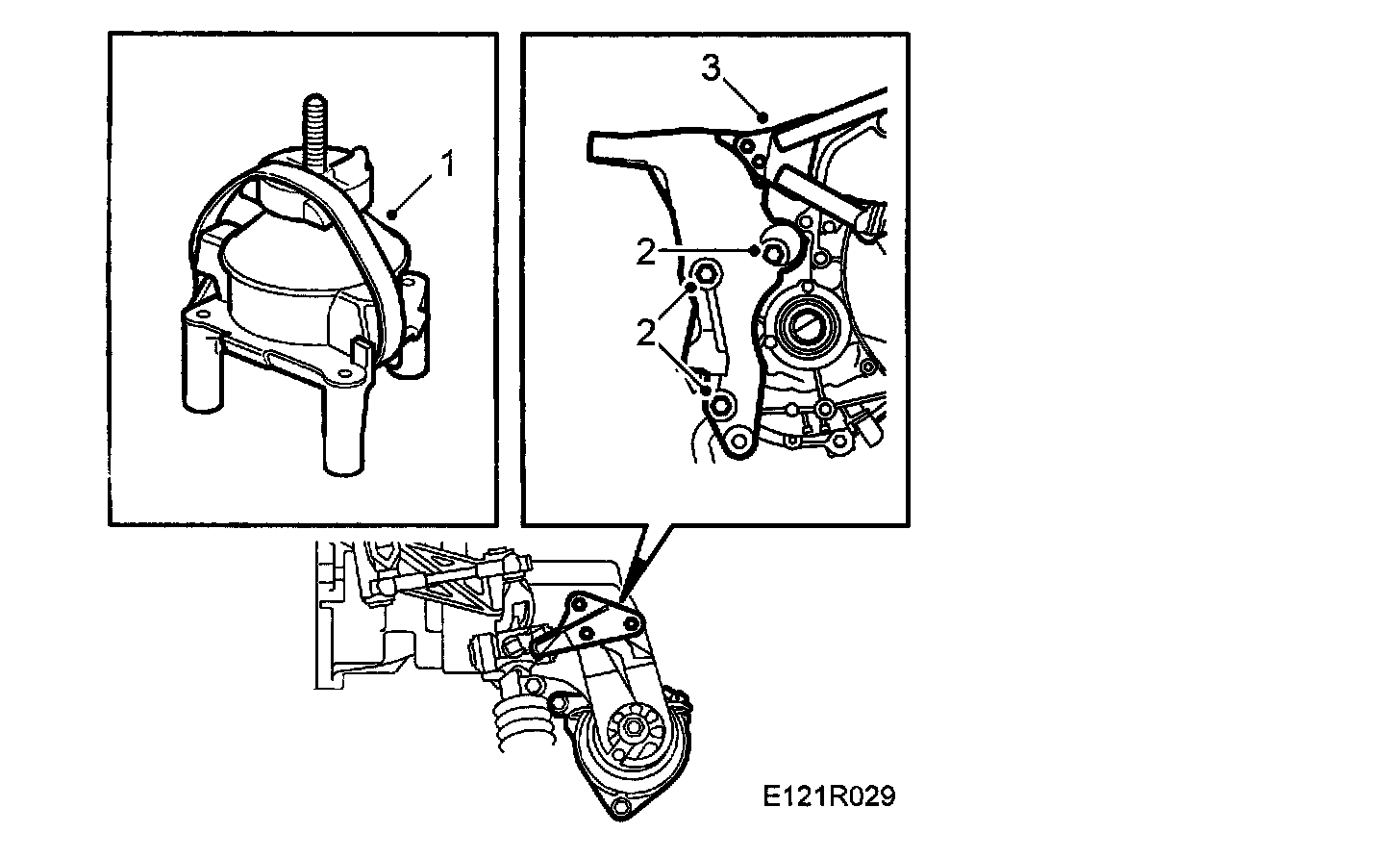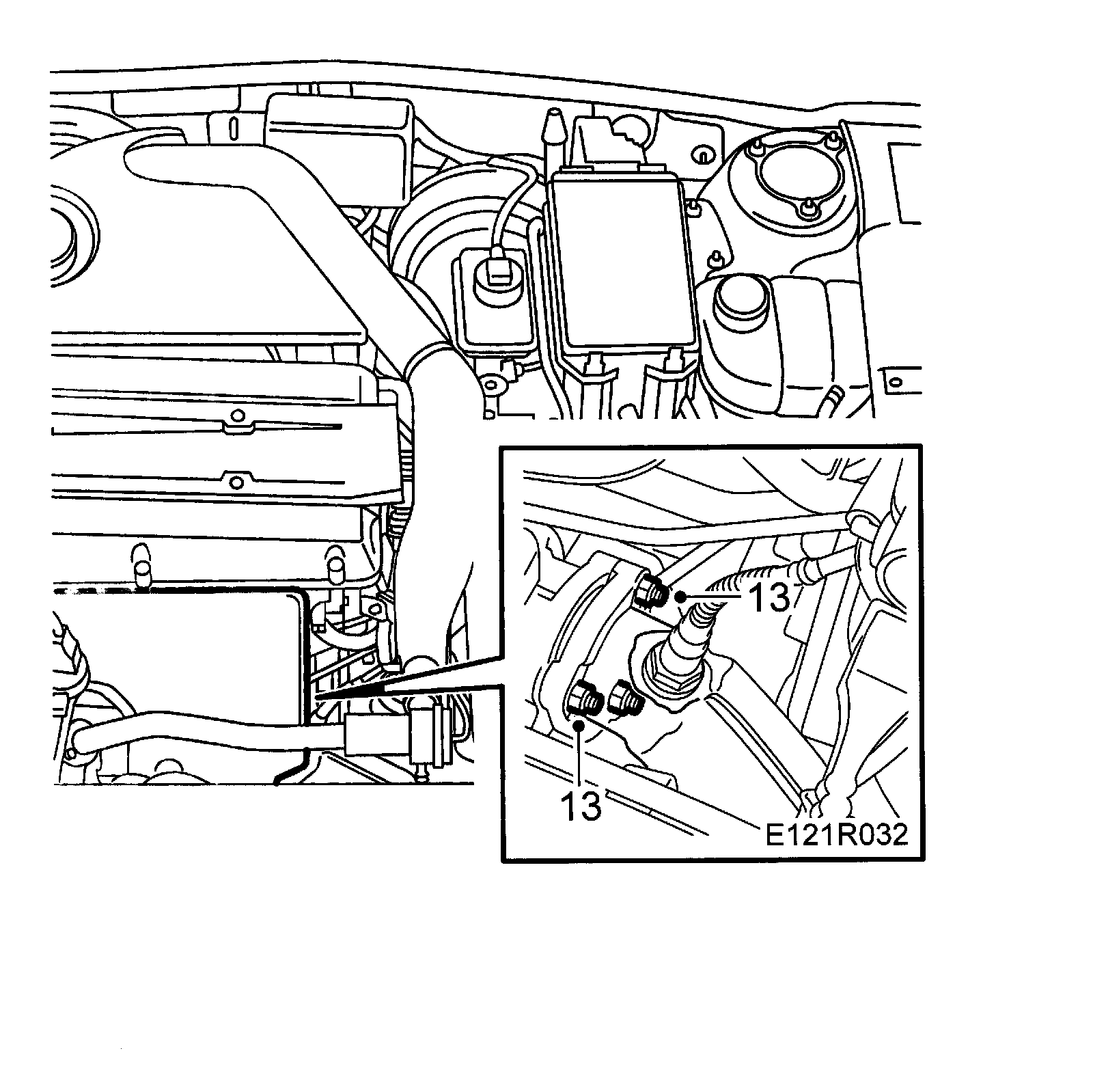 4. Remove the engine mounting's upper retaining nut and the bolts securing it to the subframe.