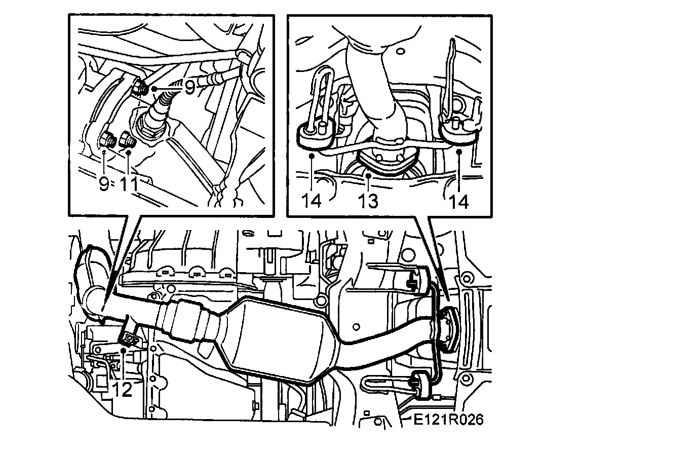 13. Undo the pipe joint between the front and rear exhaust systems.