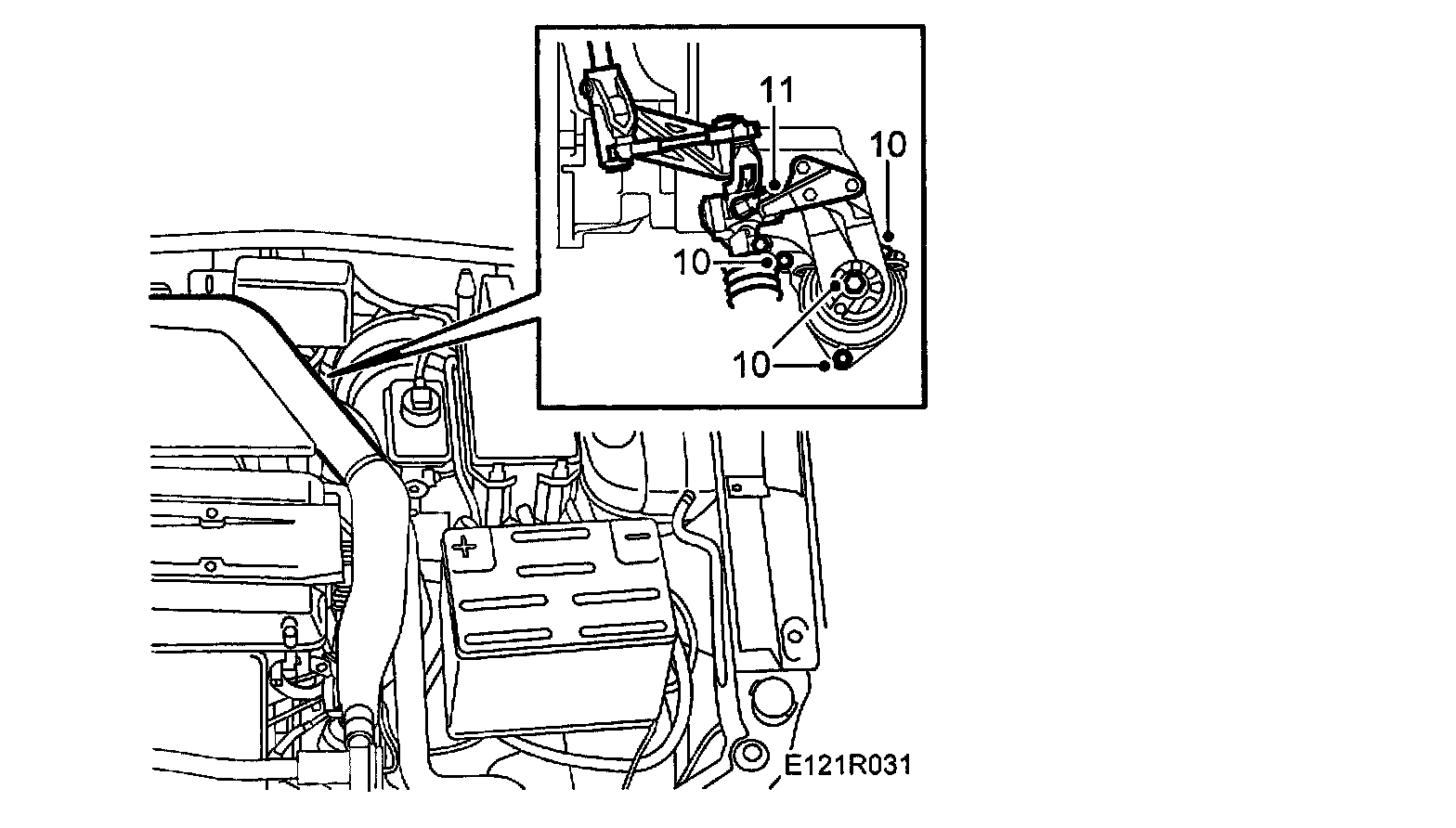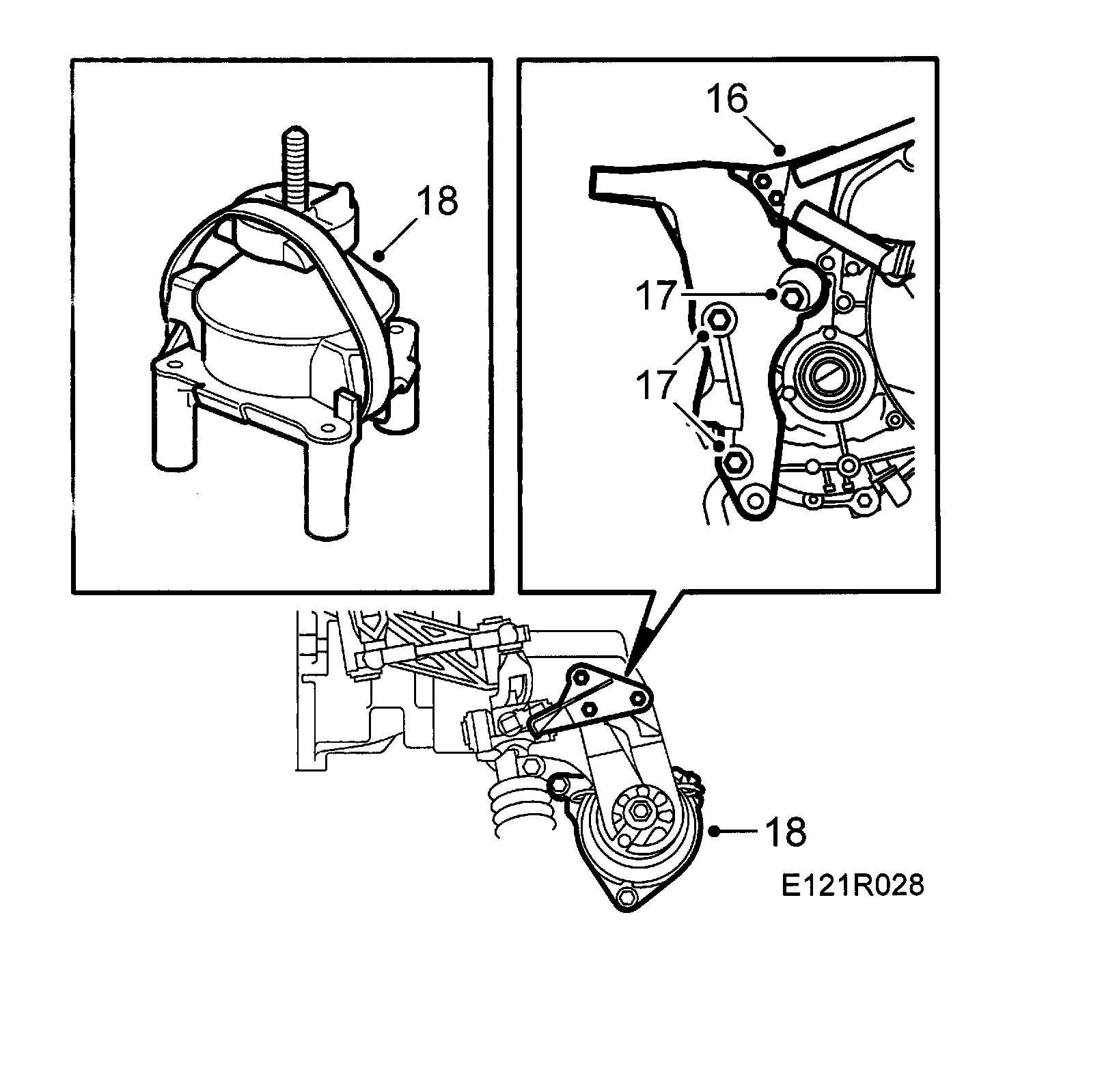 10. Tighten the engine mounting's retaining bolts, using a torque wrench.