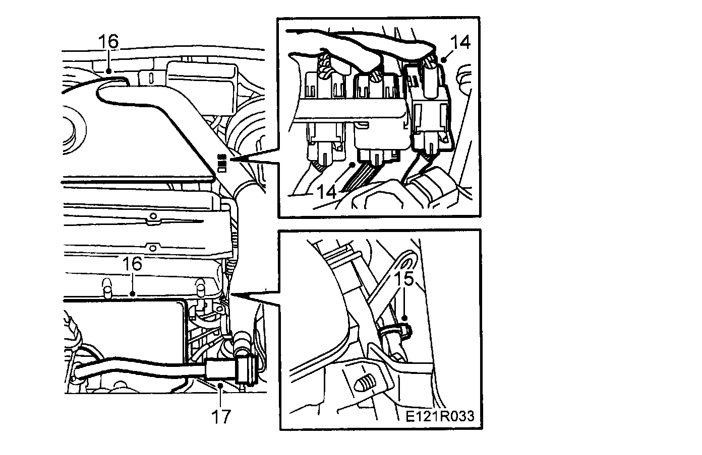 16. Fit the top engine cover and the heat shield over the exhaust manifold.