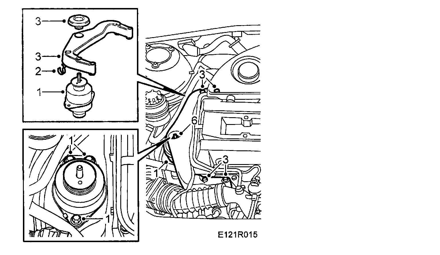 3. Tighten the bolts and nuts on the engine mounting to torque
