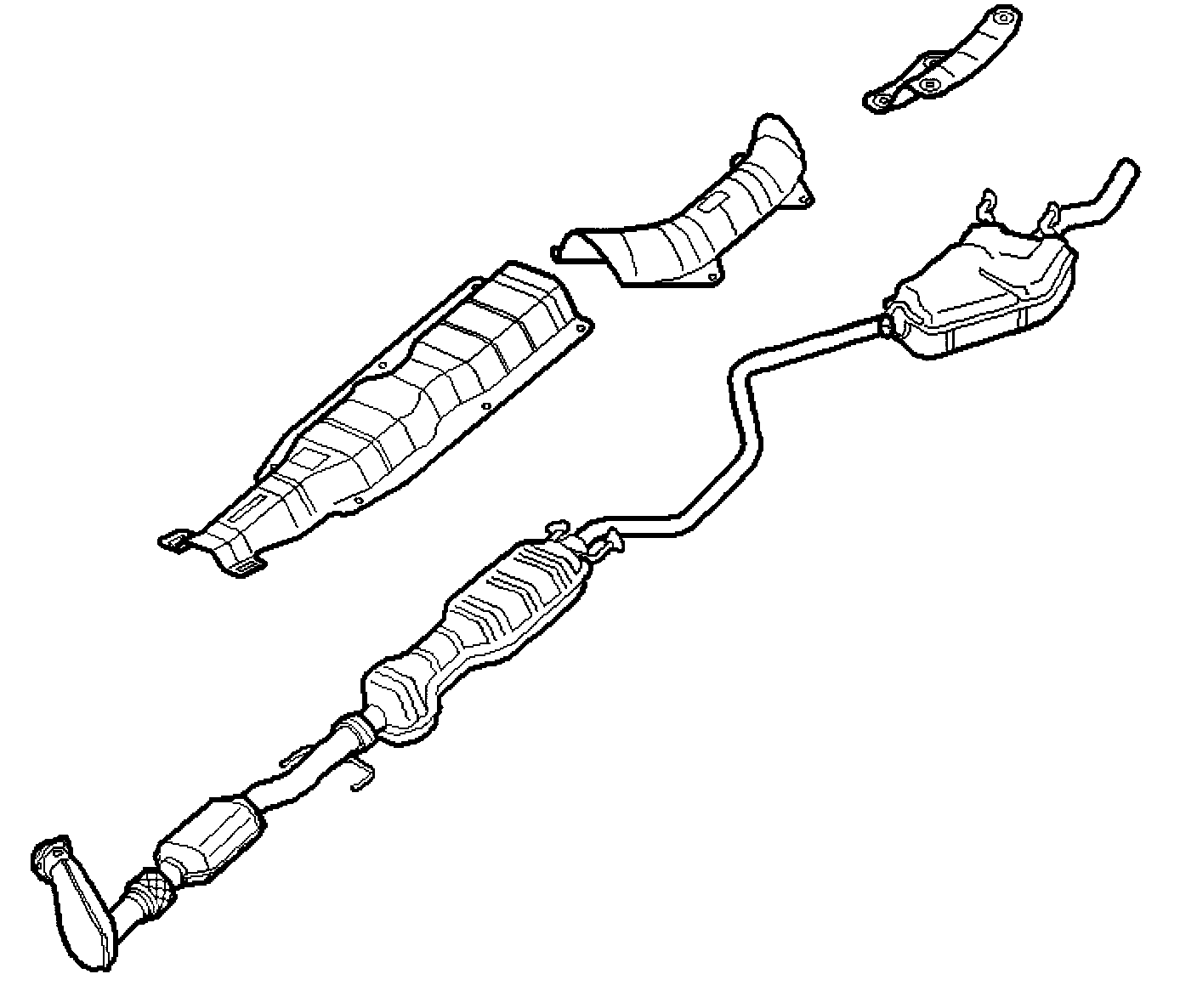 The exhaust system is designed to divert the engine exhaust gases and provide low flow resistance, low noise level and long service life. It consists of two sections, the front with two catalytic converters and the rear with two silencers. Both silencers are combined resonance and absorption silencers.