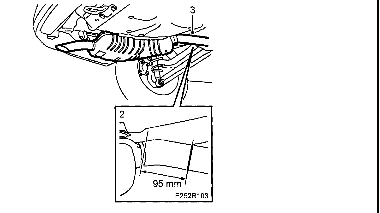 2. Mark the underside of the exhaust pipe 95 mm from the joint where it is welded to