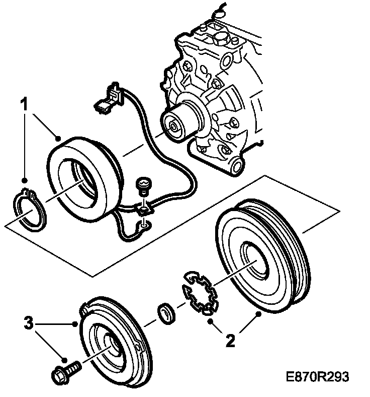 1. Set the solenoid winding in place with the guide pin in the groove on the compressor housing. Check that the windings run correctly. Attach the circlip.