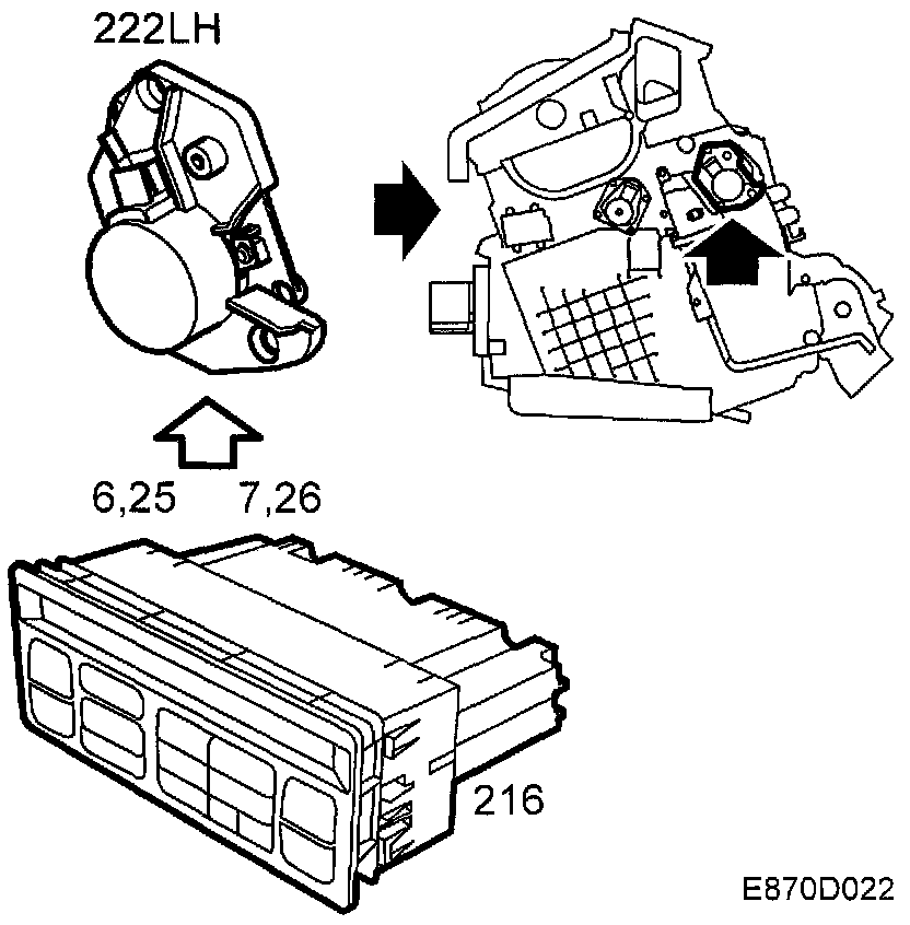 If the motor jams, diagnostic trouble code B2496 is generated and 07 is displayed instead of right-hand temperature when calibrating.