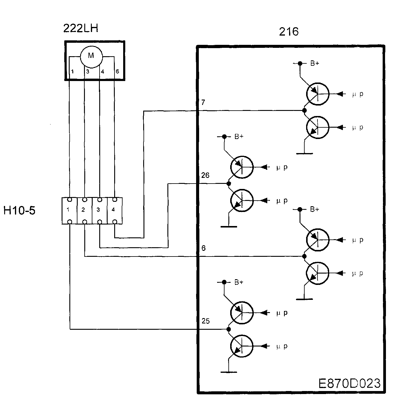 The stepping motor for the left-hand air-mixing flap is supplied with current from pins 25 and 6 (winding 1) and pins 26 and 7 (winding 2) on the ACC unit.