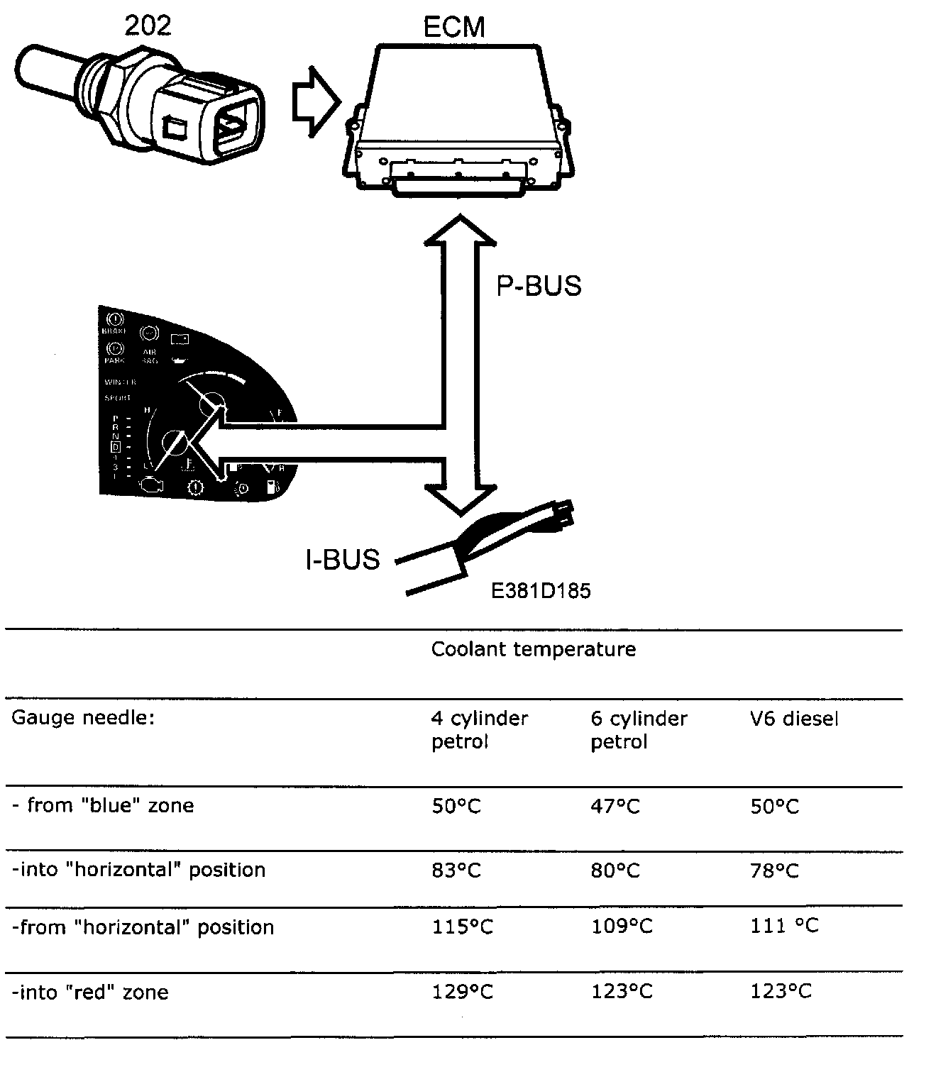 The coolant temperature gauge is supplied with current from the main instrument unit, The coolant temperature gauge is controlled by the main instrument unit.