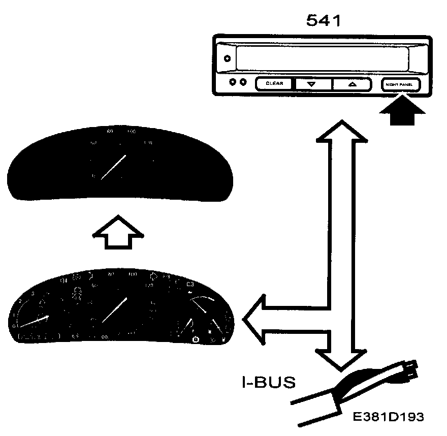 If the NIGHT PANEL button is pressed again, SID sends the bus information "NIGHT PANEL OFF", whereupon the main instrument unit first resets all gauges to normal display and then switches on the illumination.