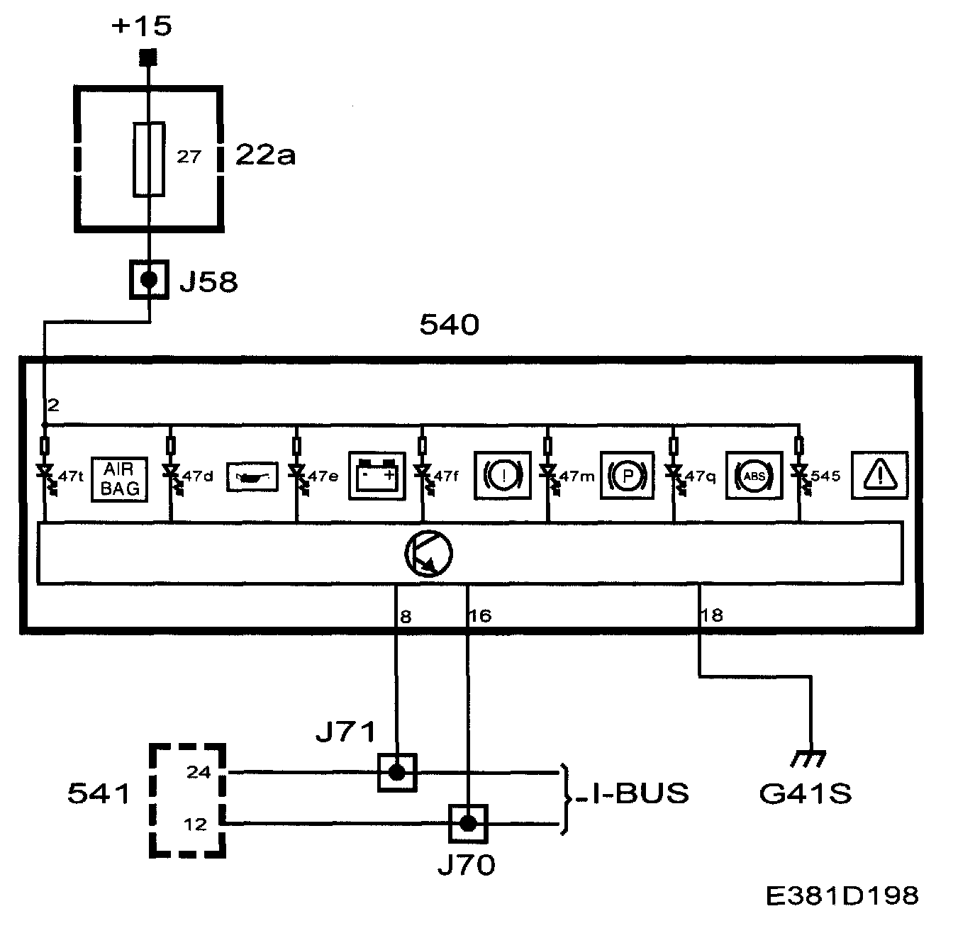 The lamp is supplied with +15 voltage in the main instrument unit and grounded internally in the main instrument when any of the following warning or indicator lamps are lit: