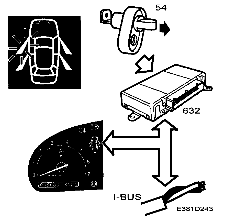 The main instrument unit control module grounds the outputs of the symbols for the driver's door and the car, which then light up. The other LEDs remain off. The car symbol always lights up if a door or the tailgate is open.