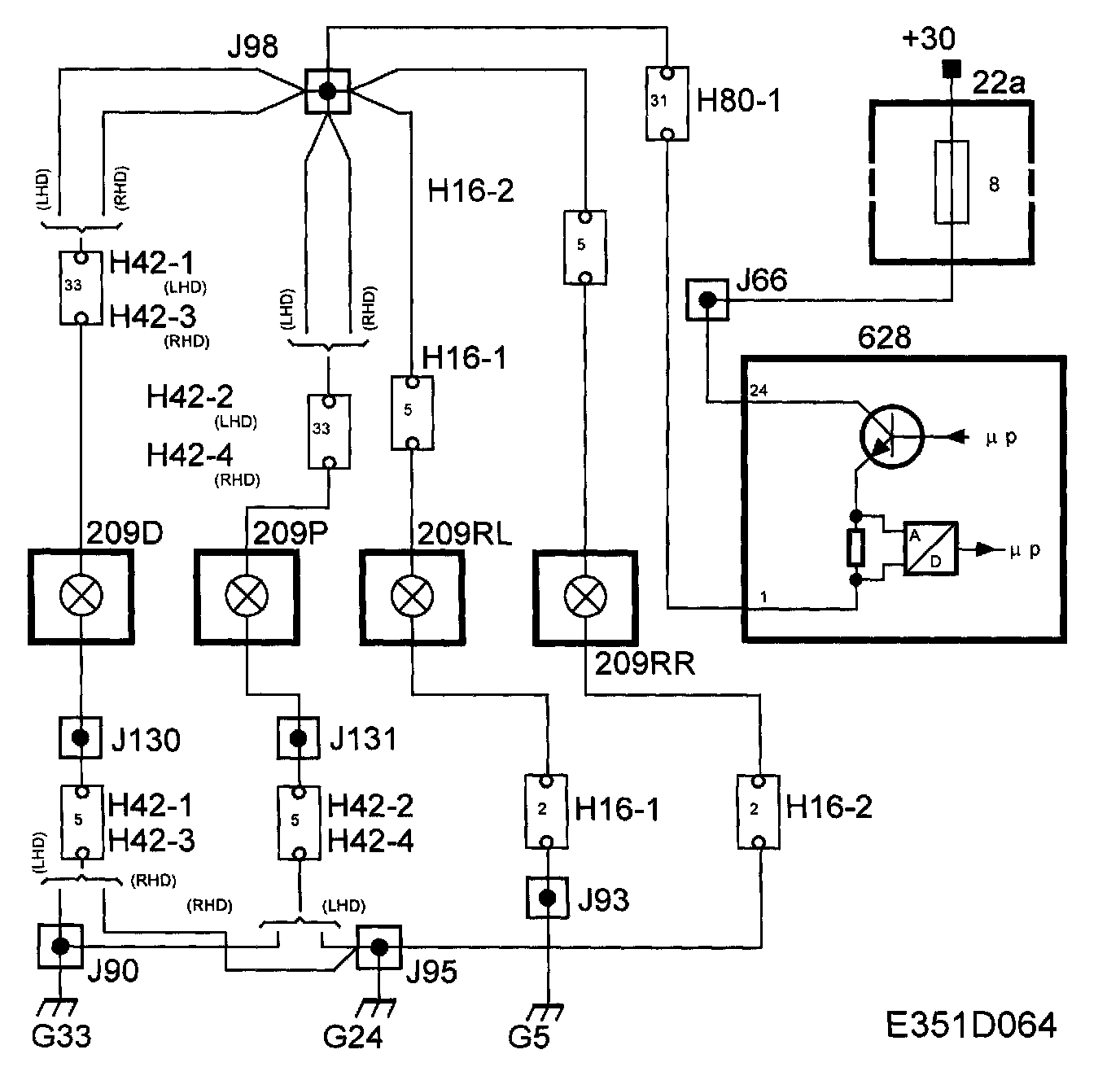 +30 current is fed to DICE for the courtesy lights. When DICE has received information via the bus, it turns on or off the courtesy lights. In other words, +30 current is supplied or not supplied, as the case may be, to the courtesy lights from pin 1 on the control module.