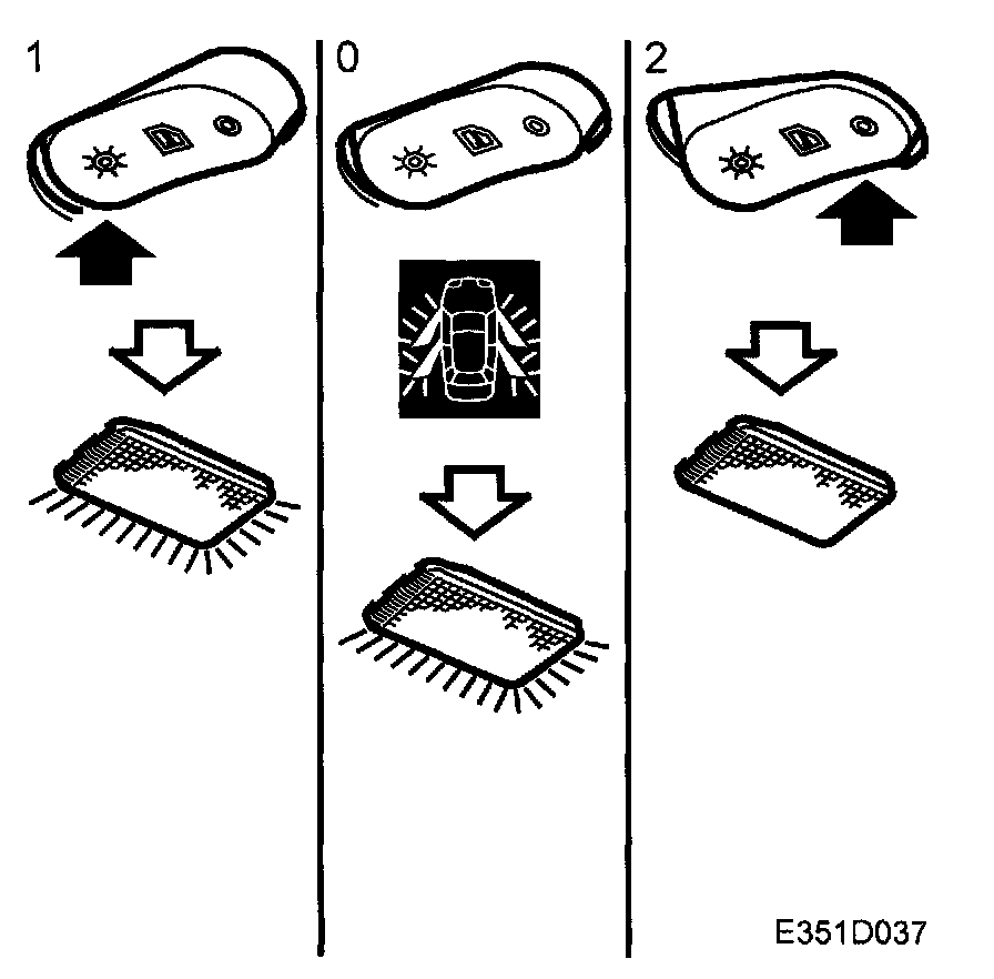 The floor well lighting under the dashboard is on when the light switch is in position 1 or when one or more doors are kept open. After 20 minutes, the floor lighting will be turned off automatically if the ignition switch is in OFF position.