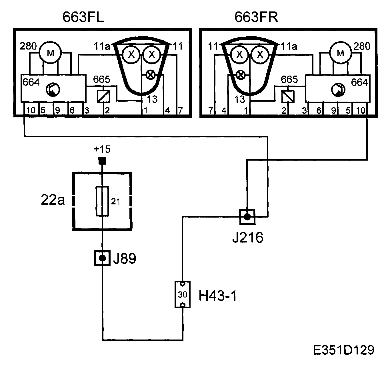 From fuse 21 in dashboard fuse box to headlamp, pin 10.