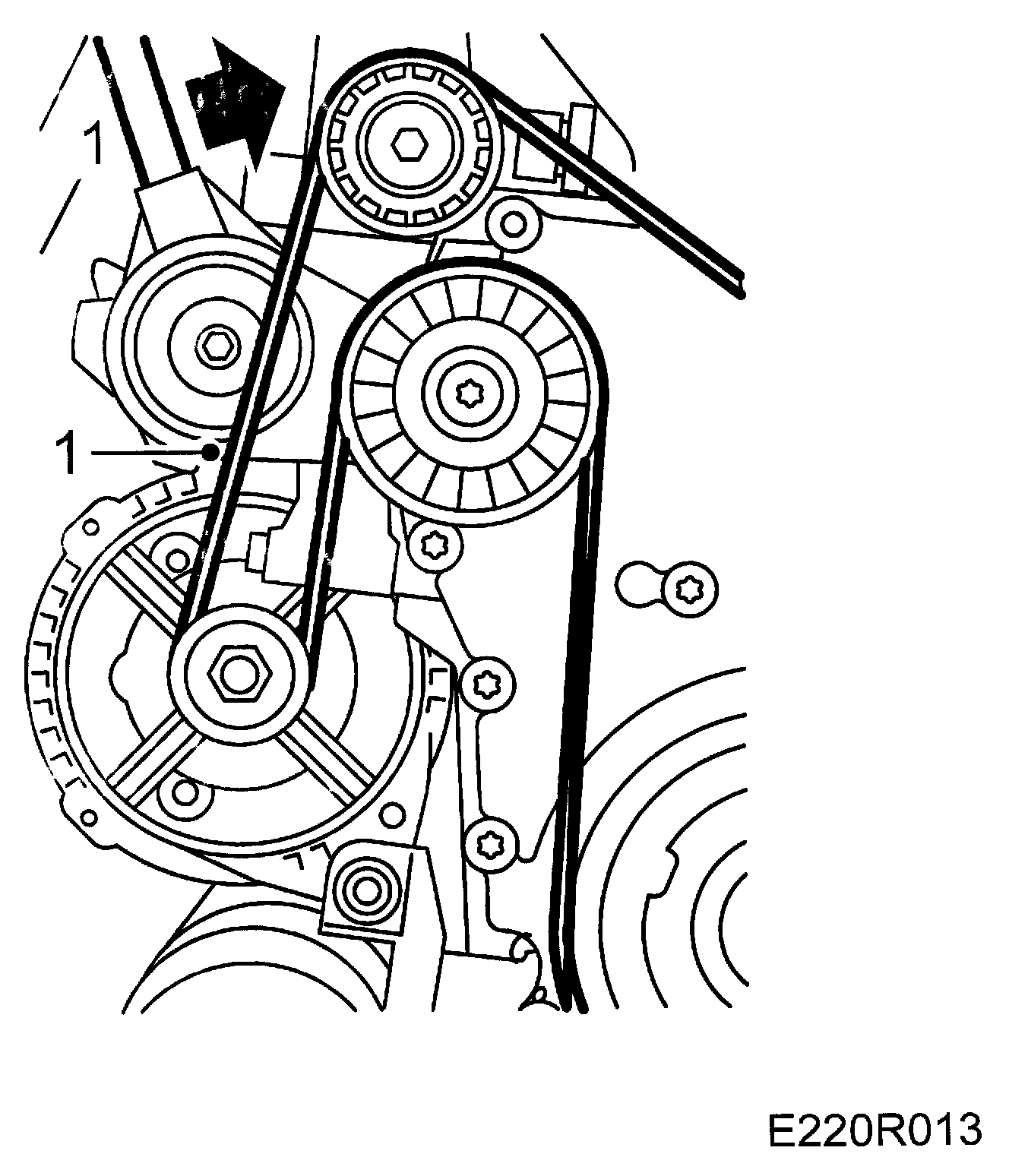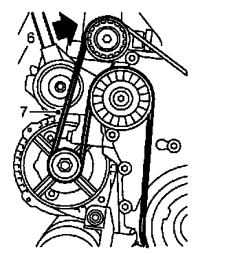 6. Start the engine and run it at idling speed for a while. Switch off the engine and check that the belt is positioned correctly.