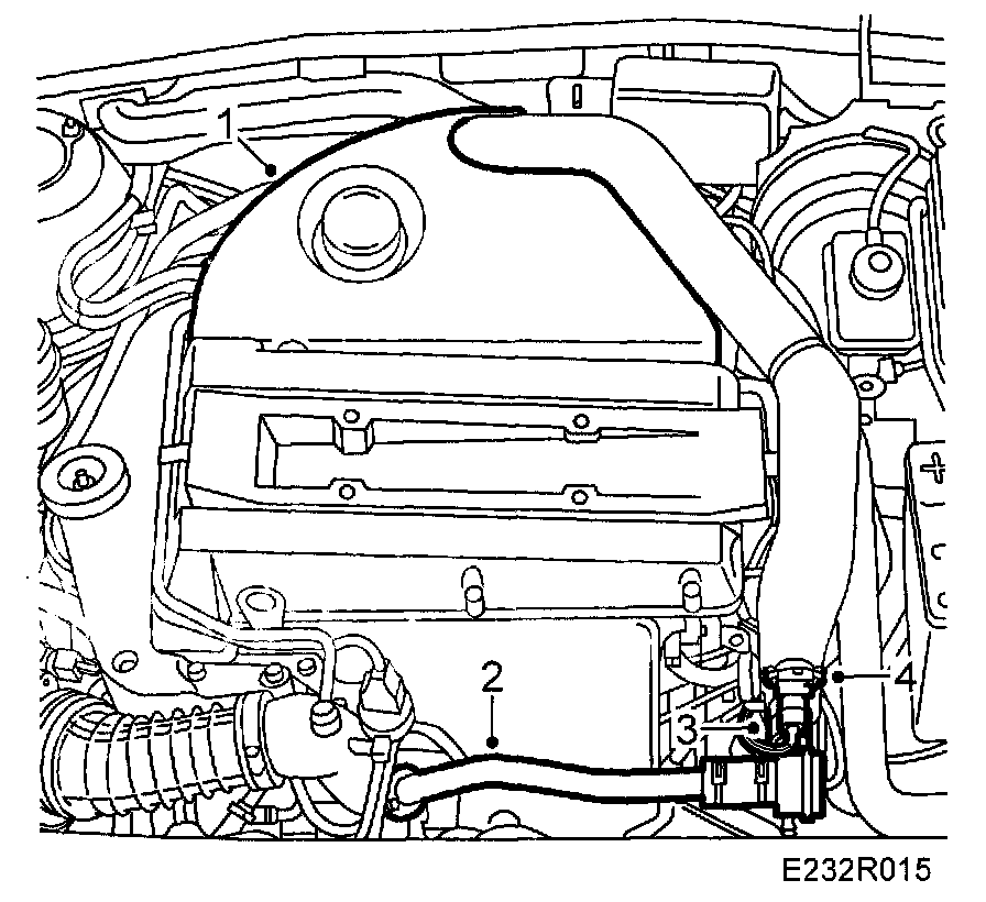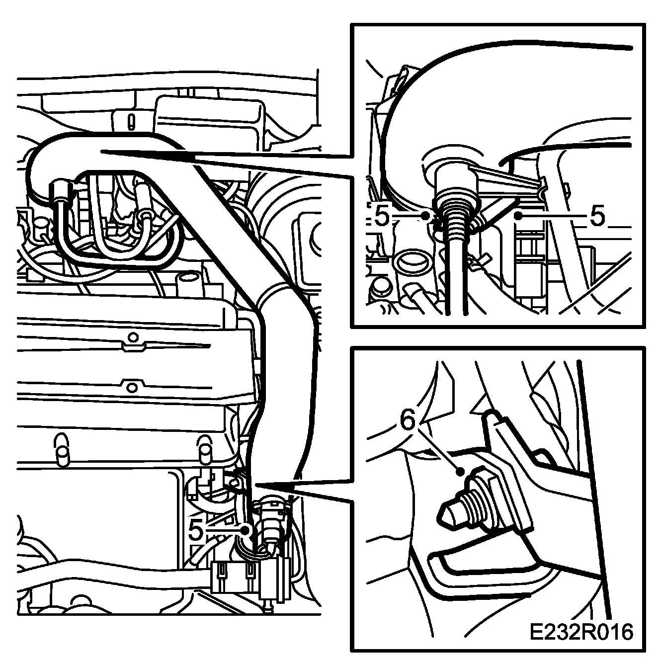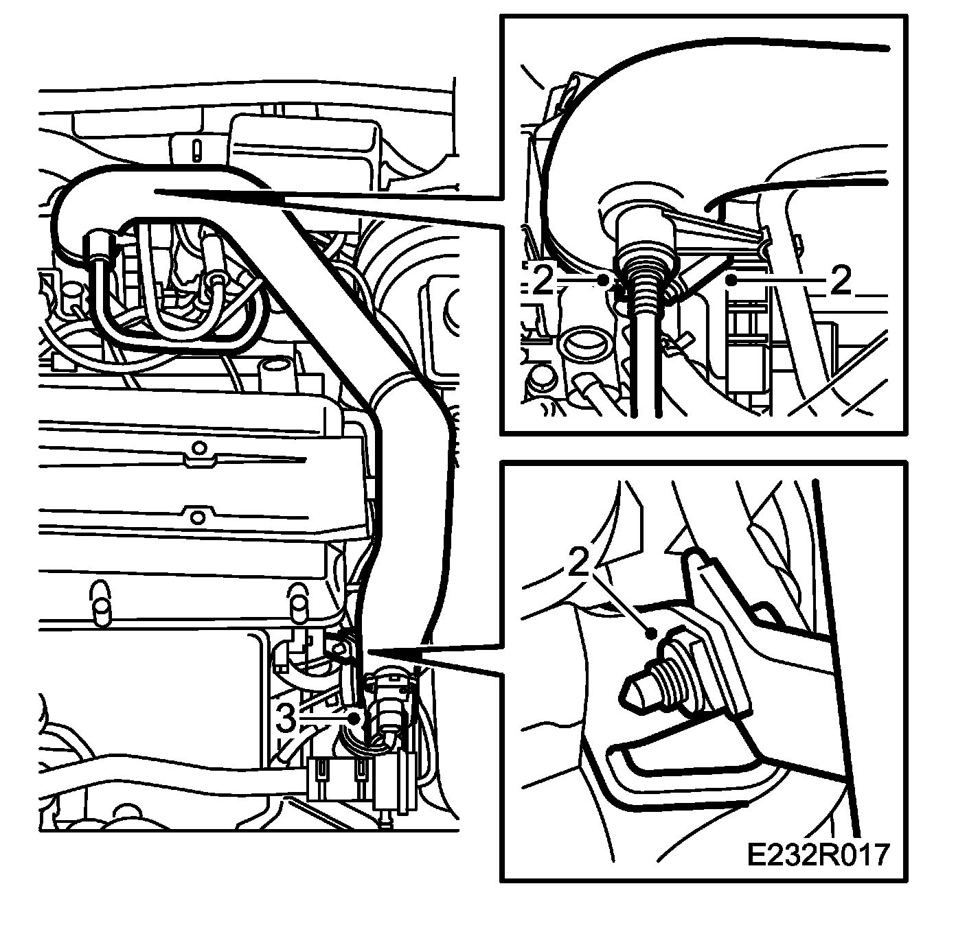 3. Connect the charge air hose to the pipe. Tighten the hose clip and bolt on the cylinder head.